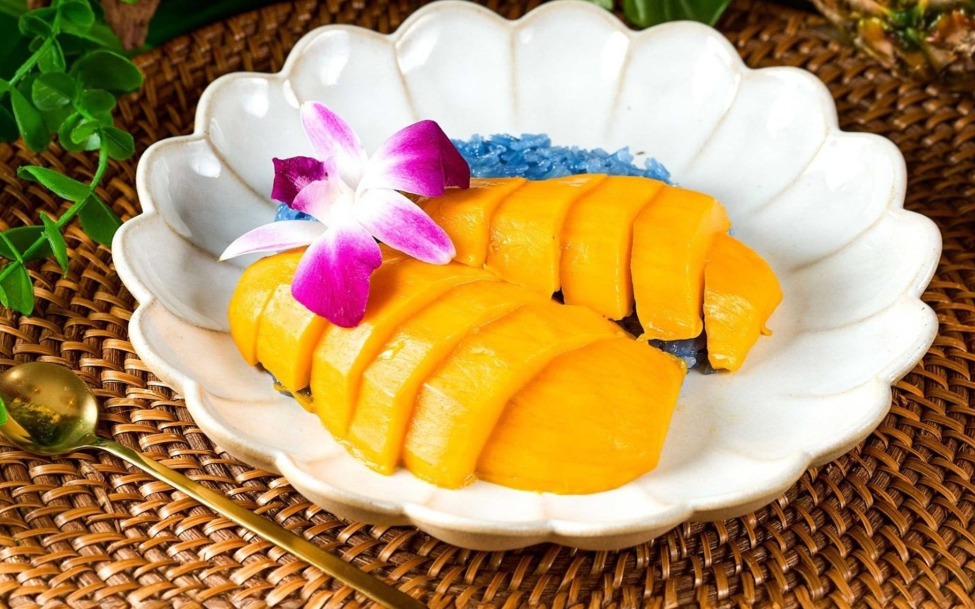 Thai’s iconic dessert, sweet ripe mango, and served with blue coconut rice.